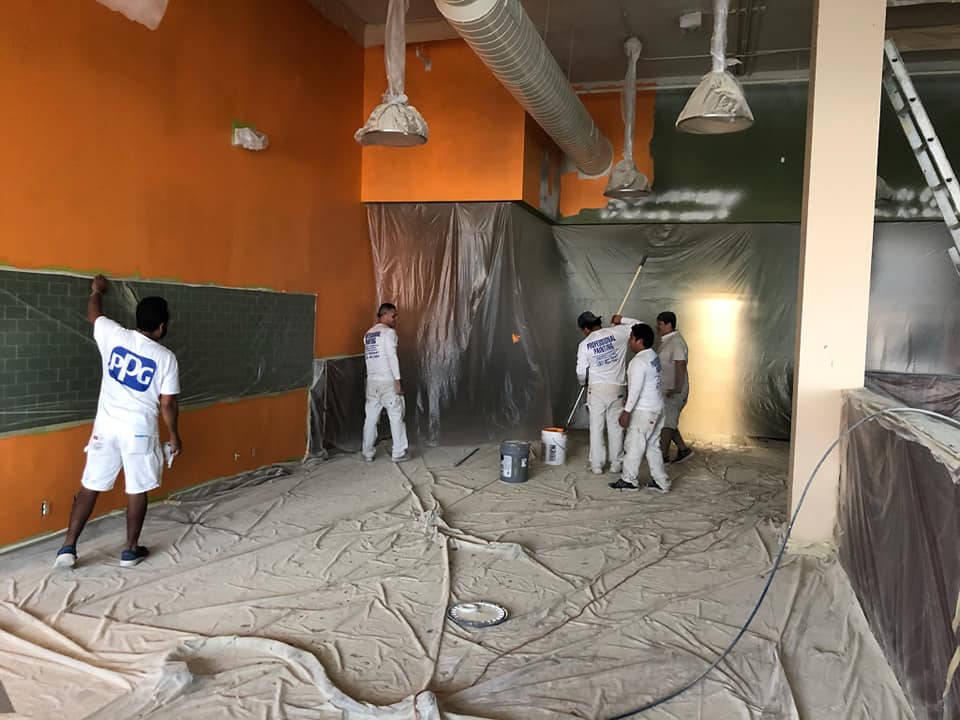 The painters have painted a lot of things orange